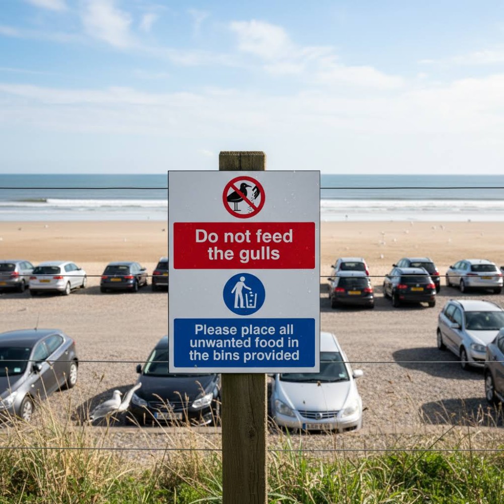 Overall, using this sign helps protect public health, preserve local wildlife habits, and reduce maintenance costs associated with litter and gull-related damage. Clear signage fosters responsible public behaviour and contributes to a safer, cleaner, and more enjoyable environment for everyone.