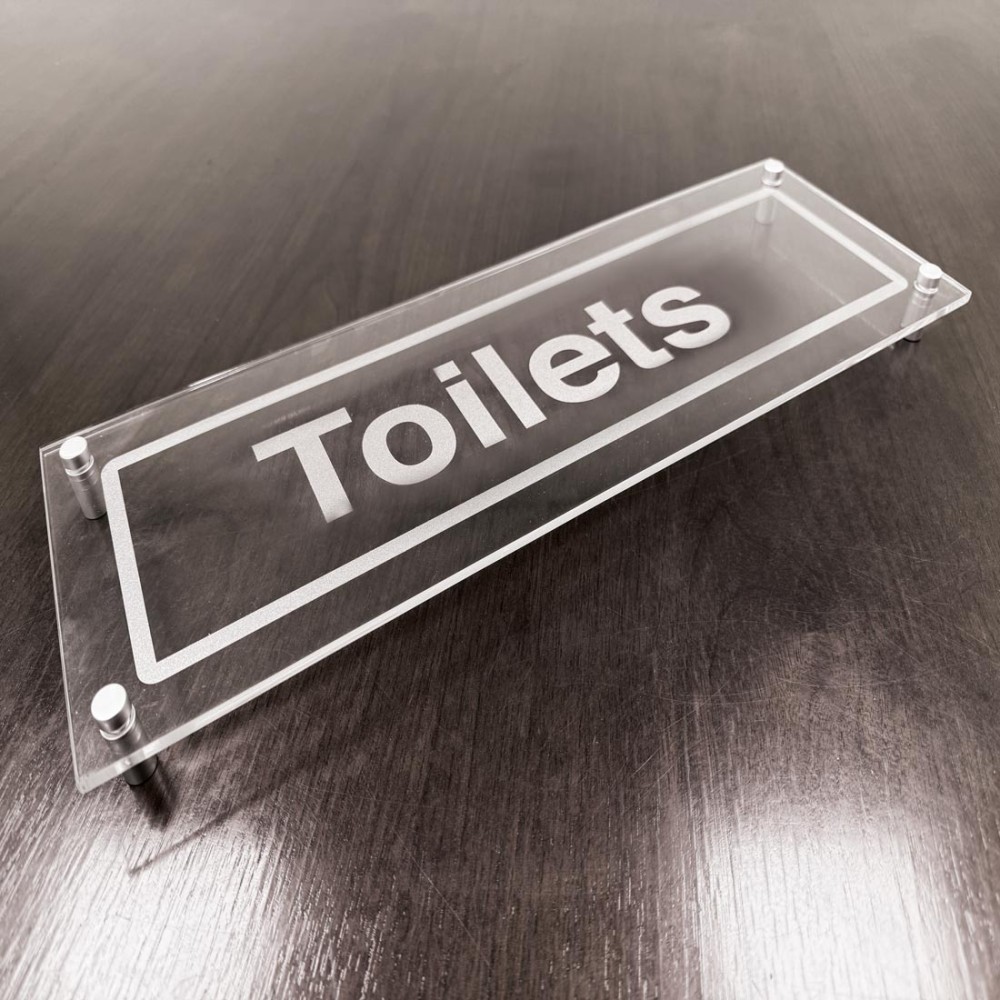 Toilets - Clear Acrylic Visual Impact Sign with Stand-off Locators - Safety Signs by Caledonia Signs