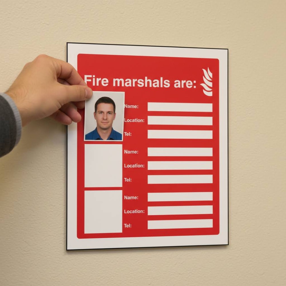 Beyond facilitating faster emergency response, the Fire Marshals Are (6 Names and Numbers) sign fosters accountability and readiness among the designated fire marshals. Having their names and contact information publicly displayed motivates these individuals to stay current with training and maintain a strong understanding of fire safety procedures. The sign also reassures building occupants that a committed and organised team is in place to protect their safety, promoting a culture of confidence and preparedness. Overall, this sign is an essential element in strengthening fire safety management and creating a safer environment for everyone.