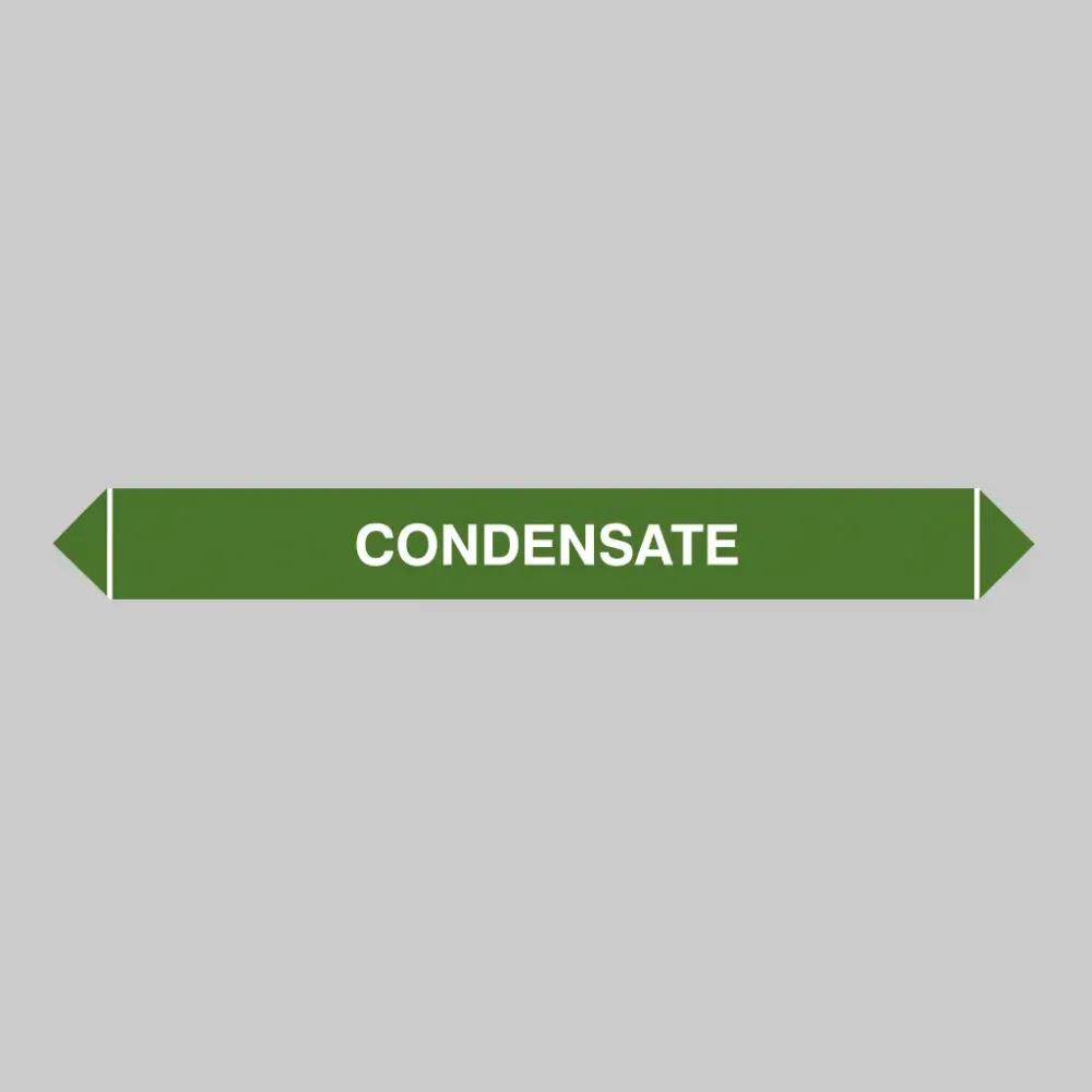 Condensate "Flow Markers are used to clearly indicate the direction and flow of condensate - water formed from the condensation of steam or humid air - within piping systems. These markers help maintenance personnel, engineers, and operators quickly identify condensate lines, ensuring proper handling and preventing operational issues.