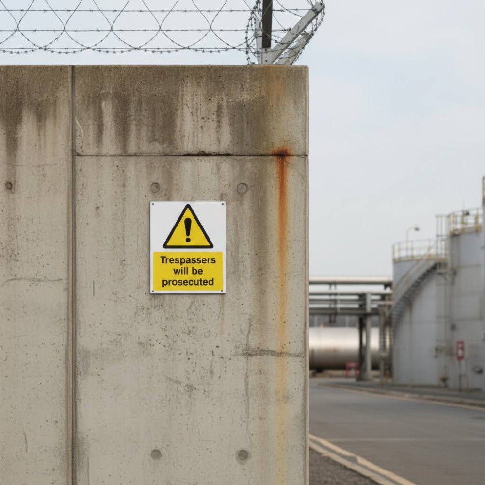 The main purpose of this sign is to deter unauthorised individuals from entering the property by clearly communicating that trespassing is not tolerated and will lead to prosecution. This strong legal warning helps protect property owners from unwanted intrusions, theft, vandalism, or other criminal activities. It also reinforces boundaries and communicates that the area is actively monitored or enforced.