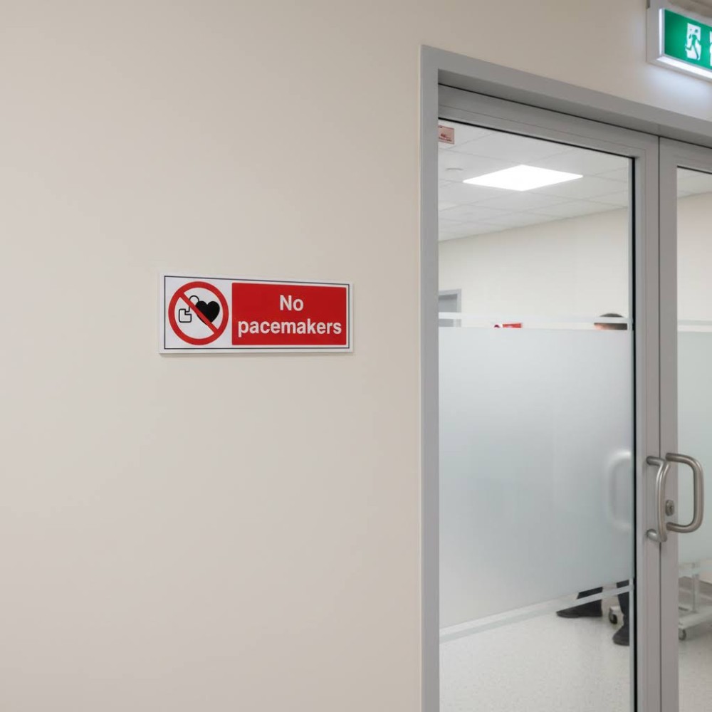 Overall, the No Pacemakers sign is an important safety measure to ensure that people with sensitive medical devices can avoid areas where their health could be compromised, thereby maintaining a safer workplace or public space for everyone.