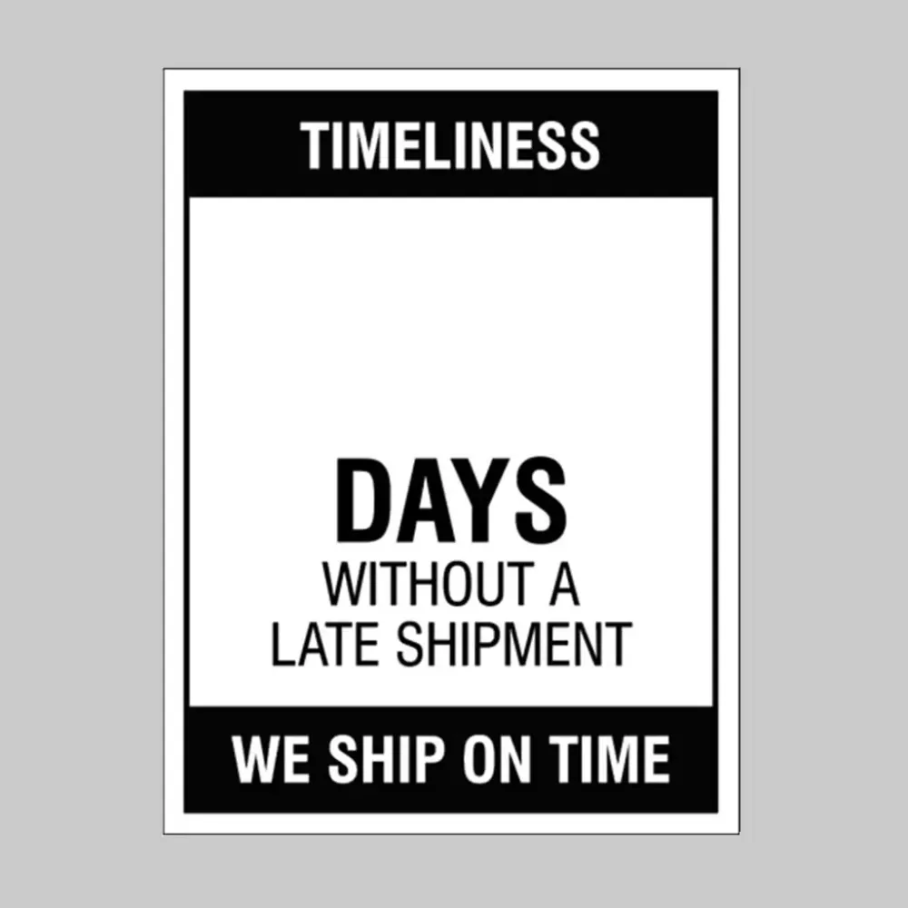 Large Wipe Clean Board "Timeliness (Write Number) Days without a Late Shipment" - Safety Signs by Caledonia Signs