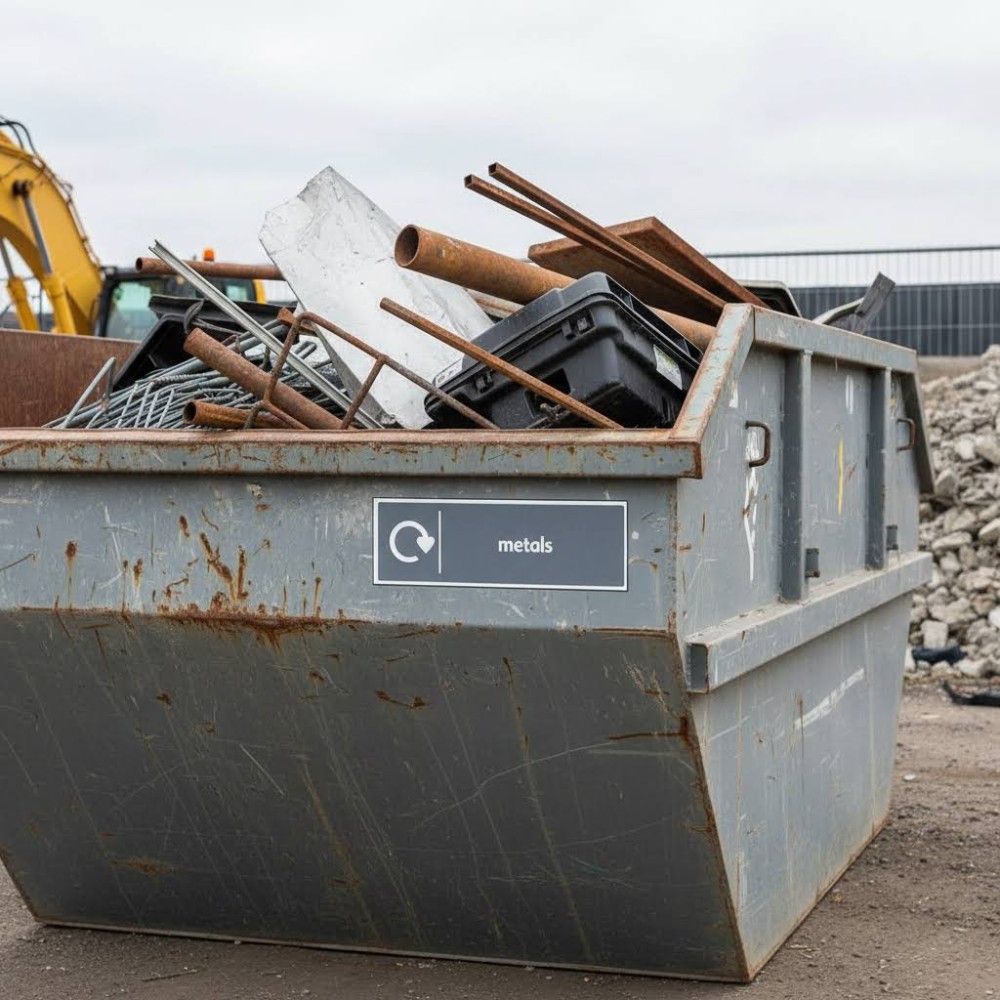 Recycling metals conserves natural resources by reducing the need for mining raw materials, saves energy, and reduces landfill waste. The sign supports compliance with WRAP (Waste & Resources Action Programme) standards, helping organisations meet their environmental and sustainability goals.