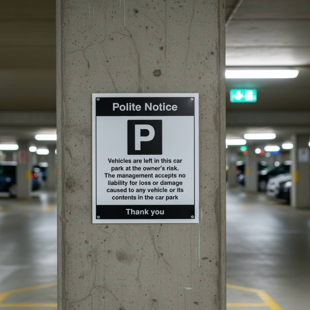 Vehicles are Left in Car Park at the Owner'sRisk - Safety Signs by Caledonia Signs