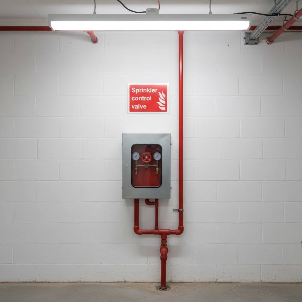 A vital fire safety tool used to clearly indicate the location of a buildingôs sprinkler system control valve. The control valve regulates the water supply to the sprinkler system, allowing firefighters, maintenance personnel, or trained staff to turn the system on or off as needed for maintenance, system testing, or emergency situations. Clear identification of the control valve ensures rapid access and proper operation, reducing the risk of water damage or system failure during a fire. Using this sign helps ensure compliance with fire safety regulations and standards, such as BS EN 12845 (Automatic Sprinkler Systems‚ Design, Installation, and Maintenance). Proper signage reduces the risk of unauthorised or accidental operation, supports regular inspections and maintenance, and ensures that the sprinkler system functions correctly when required. It also provides essential guidance to emergency responders during incidents. Placement of the sign is critical for effectiveness. It should be installed directly above, adjacent to, or on the door of the room housing the sprinkler control valve, at eye level, and in a location free from obstructions. In larger or complex buildings, additional directional signs may be used to guide personnel to the control valve. Photoluminescent or reflective signs are recommended in low-light areas to ensure visibility during emergencies or power outages. Additionally, displaying a Sprinkler Control Valve sign promotes a culture of fire safety and preparedness. It ensures that personnel can quickly locate and operate the valve when required, supports compliance with maintenance procedures, and reinforces the organisationôs commitment to protecting lives, property, and fire protection system integrity.