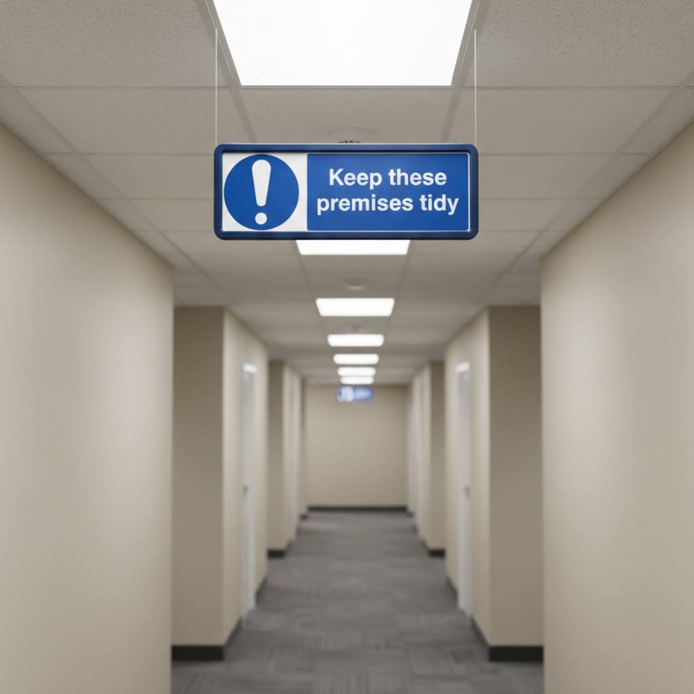 This sign is commonly placed in workshops, factories, warehouses, construction sites, offices, and communal areas where maintaining a clean and organised space is important. It is typically displayed near entrances, break rooms, storage areas, and workstations to serve as a constant reminder to staff and visitors.