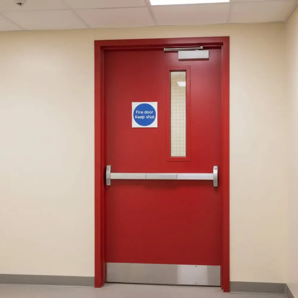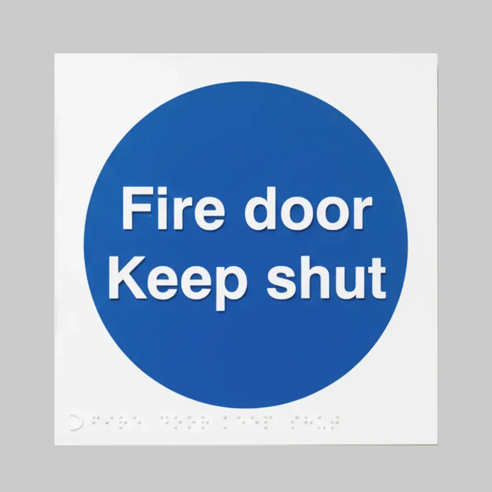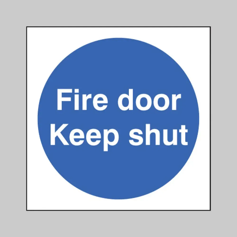 Every fire door should have an appropriate Fire door sign fitted. Where doors can be used from either side a sign is required on both sides. Doors which open on to a fire escape corridor should be locked shut and signed accordingly.