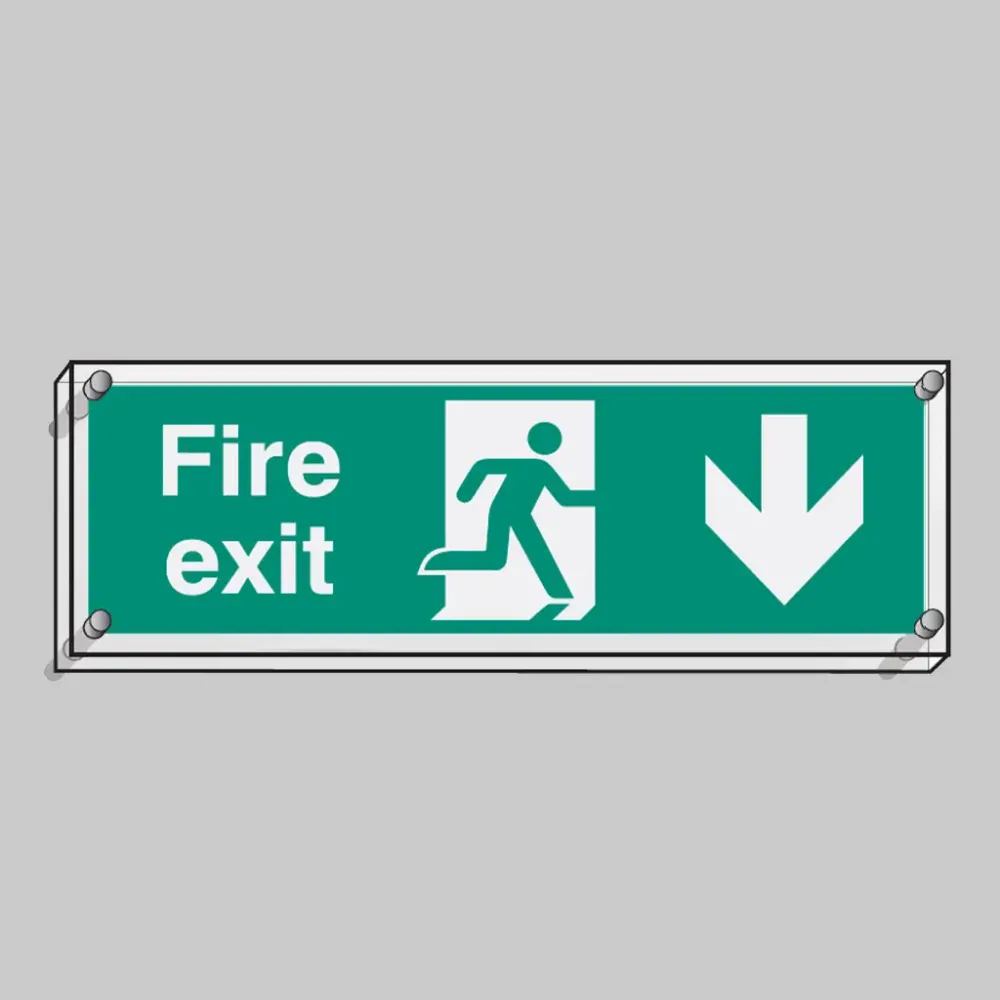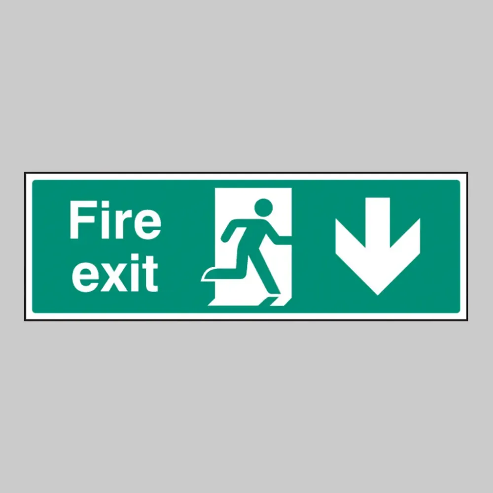 Besides guiding people safely, Fire Exit Down signs assist property owners in complying with fire safety codes and regulations, which often mandate clear, visible exit signage. Displaying these signs helps demonstrate that the building meets safety standards and reduces liability risks in case of emergencies.