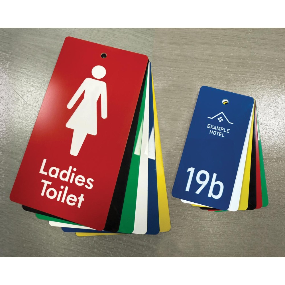 2-Ply PVC :Manufactured from durable 1.5mm 2-ply PVC with a variety of professional two-tone finishes. 2-ply PVC can be printed onto or the surface layer can be engraved to reveal a second colour beneath. Additionally, it is naturally resistant to moisture, UV rays, and many chemicals. A cost-effective, low-maintenance, and highly customisable option for facilities that need tough, legible, and long-lasting signage.