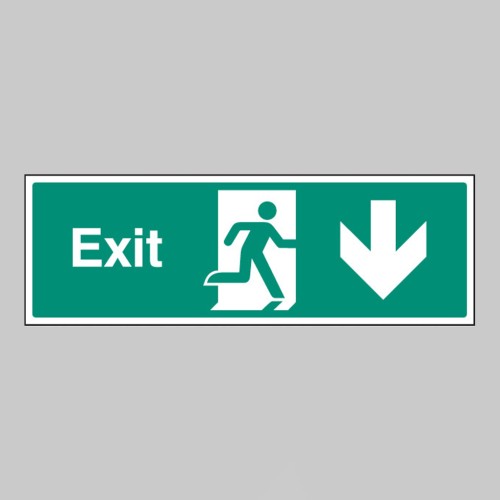 Exit "Down signs are essential for guiding people toward an exit that requires descending - typically down a staircase, ramp, or slope. These signs are especially important in emergencies, where fast and accurate direction can prevent confusion and support a smooth evacuation. By clearly indicating the need to move downward, they help occupants follow the correct escape route without hesitation.