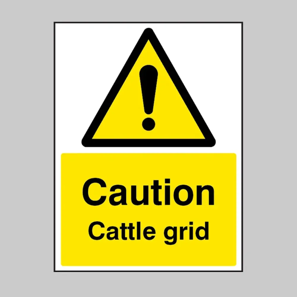 This sign should be placed in advance of cattle grids on roads, farm access routes, private tracks, and entrances to fields or pastures. It is most effective when positioned before the grid, giving road users enough time to reduce speed, remain alert, and maintain control while crossing. Signs may also be used near public footpaths or bridleways that intersect roads with cattle grids to caution walkers and horse riders.