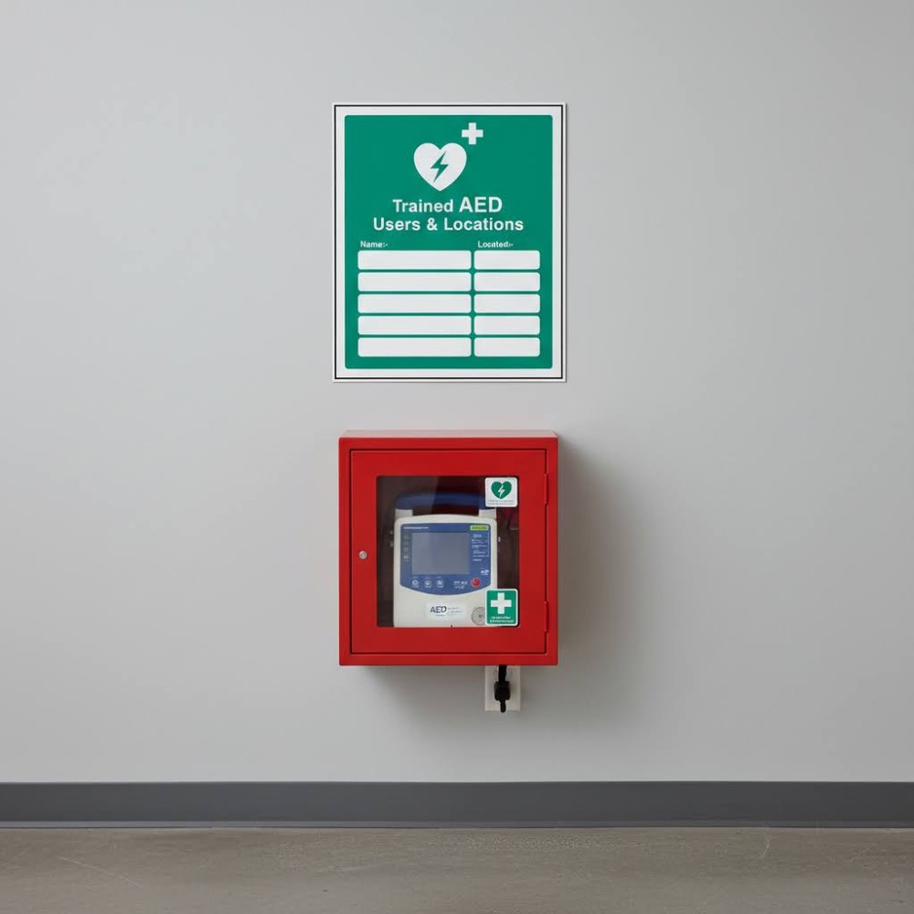 Trained AED Users & Locations (Space for 5 Names and Locations) - Safety Signs by Caledonia Signs