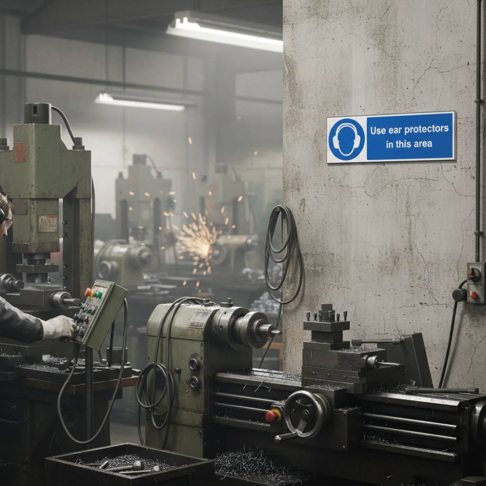 Commonly placed in workplaces such as factories, construction sites, workshops, airports, or any area where noise levels exceed safe limits. It serves as a clear reminder at entrances or within high-noise zones to prompt workers, visitors, and contractors to wear ear protection before entering.