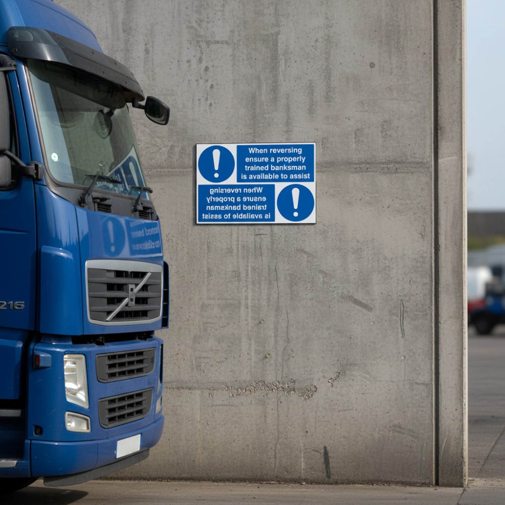 This sign is especially important in busy environments like construction sites, warehouses, loading docks, and industrial yards, where reversing vehicles pose significant risks to pedestrians and other equipment. Ensuring a banksman is present during reversing not only helps prevent accidents but also maintains effective communication between the driver and the person guiding them.