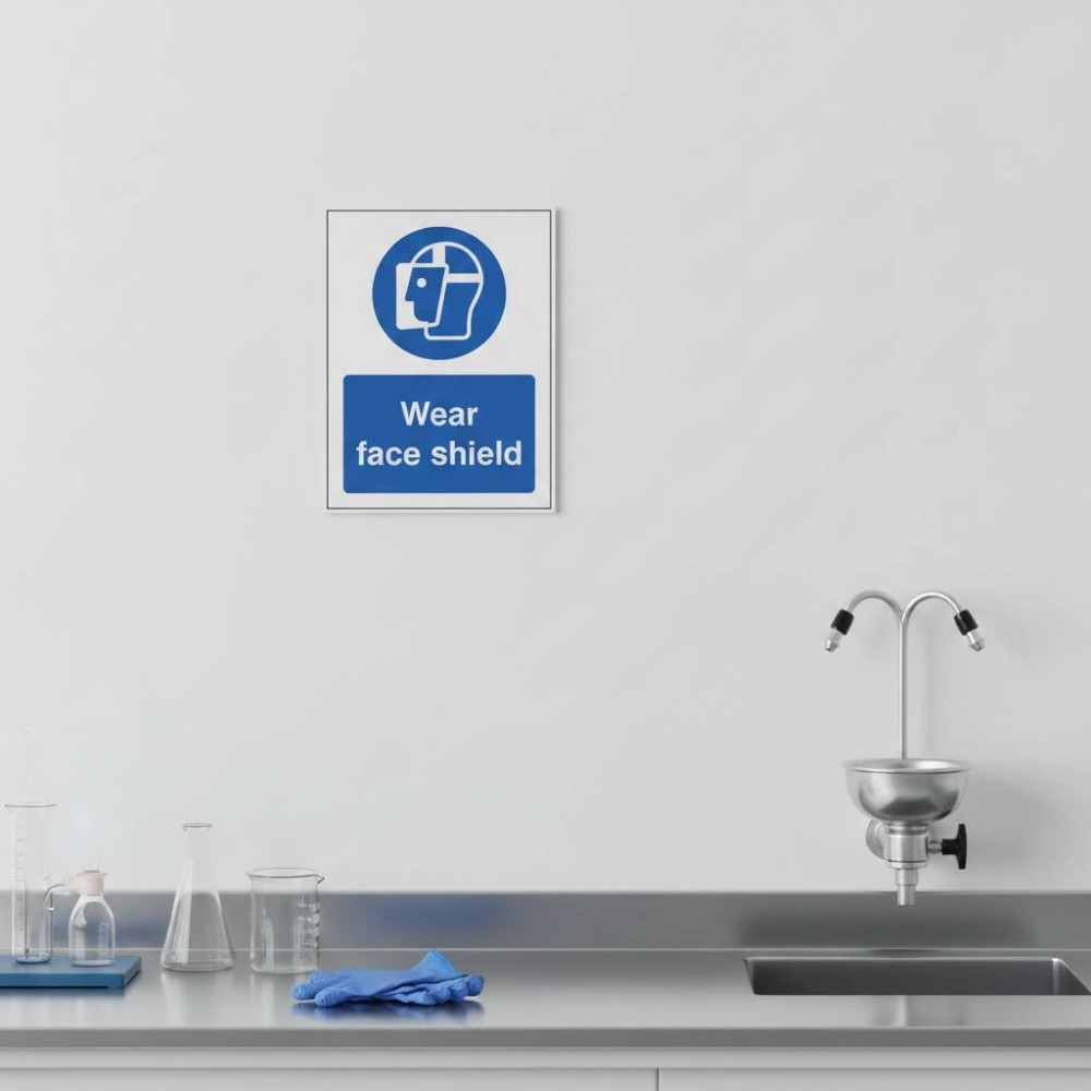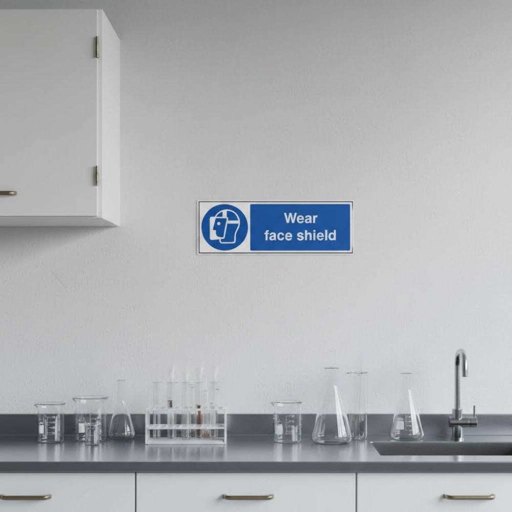 Overall, a Wear Face Shield sign is essential for protecting workers from serious harm in high-risk environments. It reinforces the importance of PPE and helps maintain a safer, more controlled workspace.