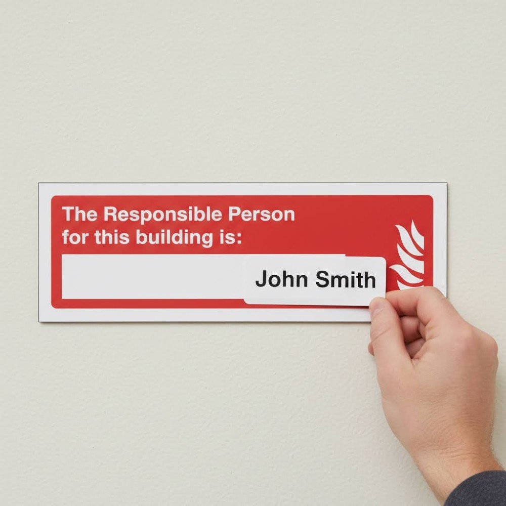 Using this sign enhances safety and helps meet legal requirements. Many health, safety, and fire regulations mandate that buildings have a clearly designated responsible person. Having this information visible ensures that, during emergencies or routine inspections, there is no confusion about who is authorised to make decisions, provide guidance, or take action, reducing delays and improving overall building safety.